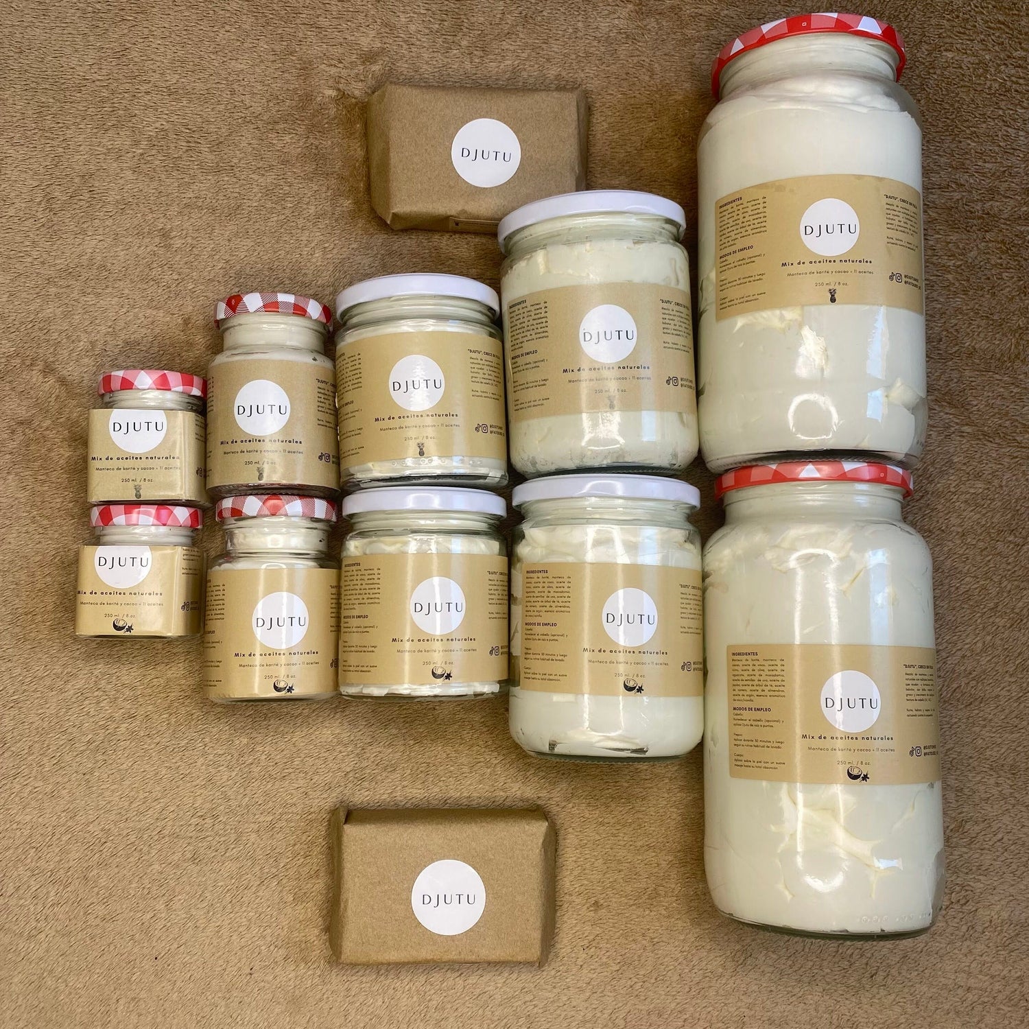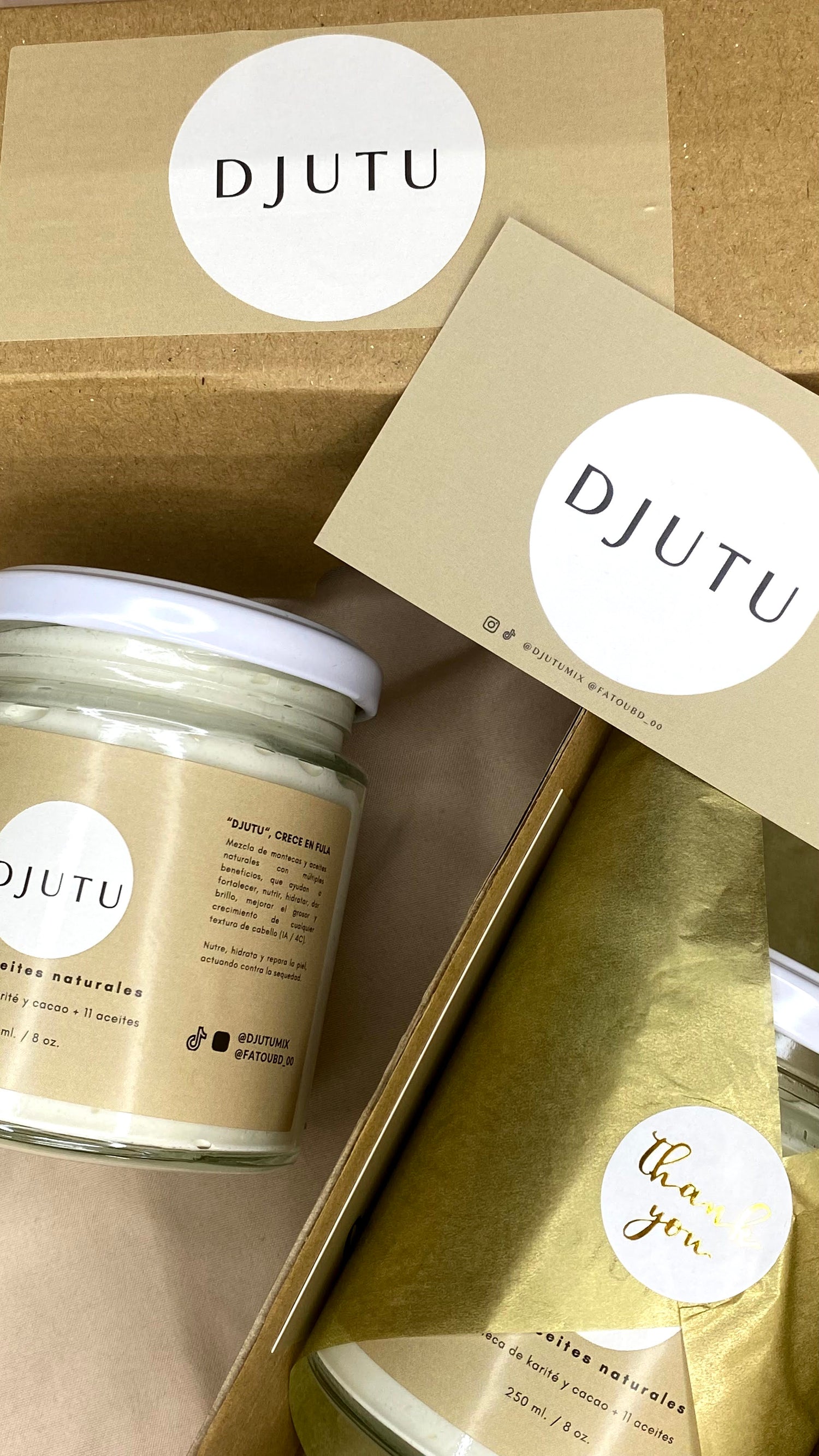El Djutu Mix y Djutu Champú Sólido, están hechos a base de manteca de karité, cacao y 11 aceites naturales. Por último, el Djutu Drops, una mezcla de 15 aceites naturales.